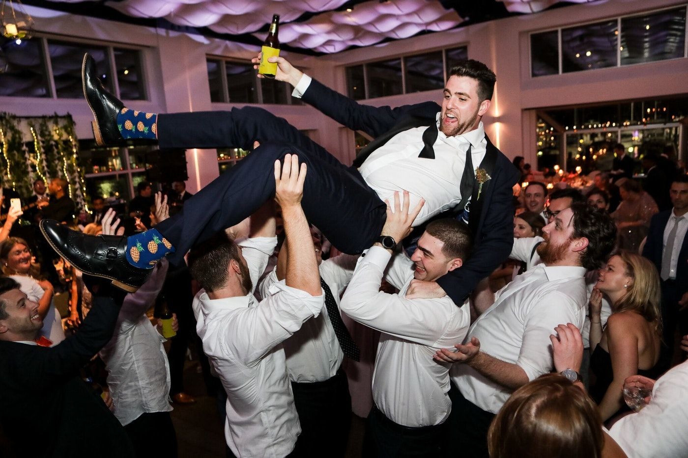 Romy Modlin Photography captures a joyful mother enjoying a mother-and-son slow dance during a Bar Mitzvah celebration. We adore how visible her love is — even if we can only see a sliver of her face.
