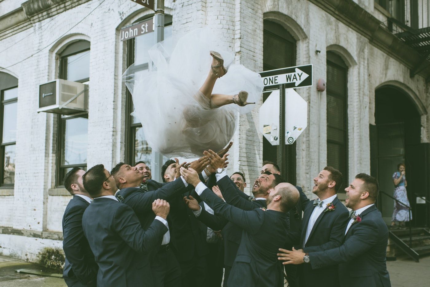 “Remi embraces her mom Joyce one last time before putting on her wedding gown,” shares Fred Marcus Studio. We love how their love shines even brighter than the fabulous lighting in this photograph.
