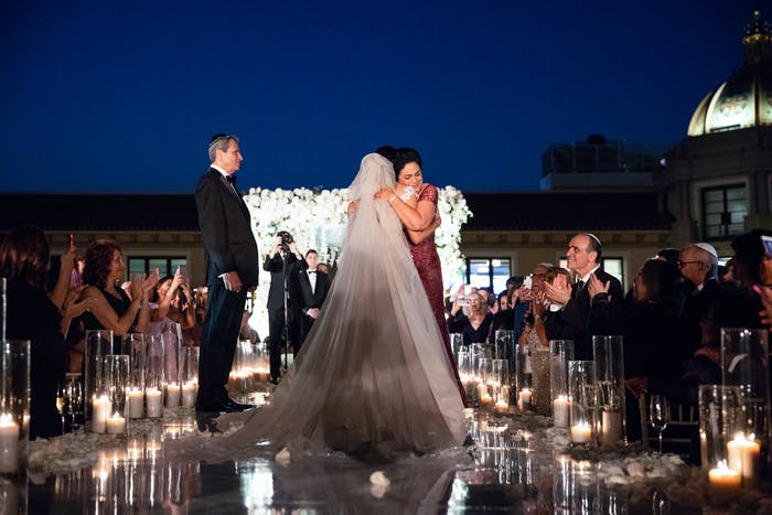 This glamorous wedding at Montage Beverly Hills featured plenty of gorgeous décor and meaningful moments. We especially love how Duke Images captures this tender moment of a mother hugging her daughter midway down the aisle.