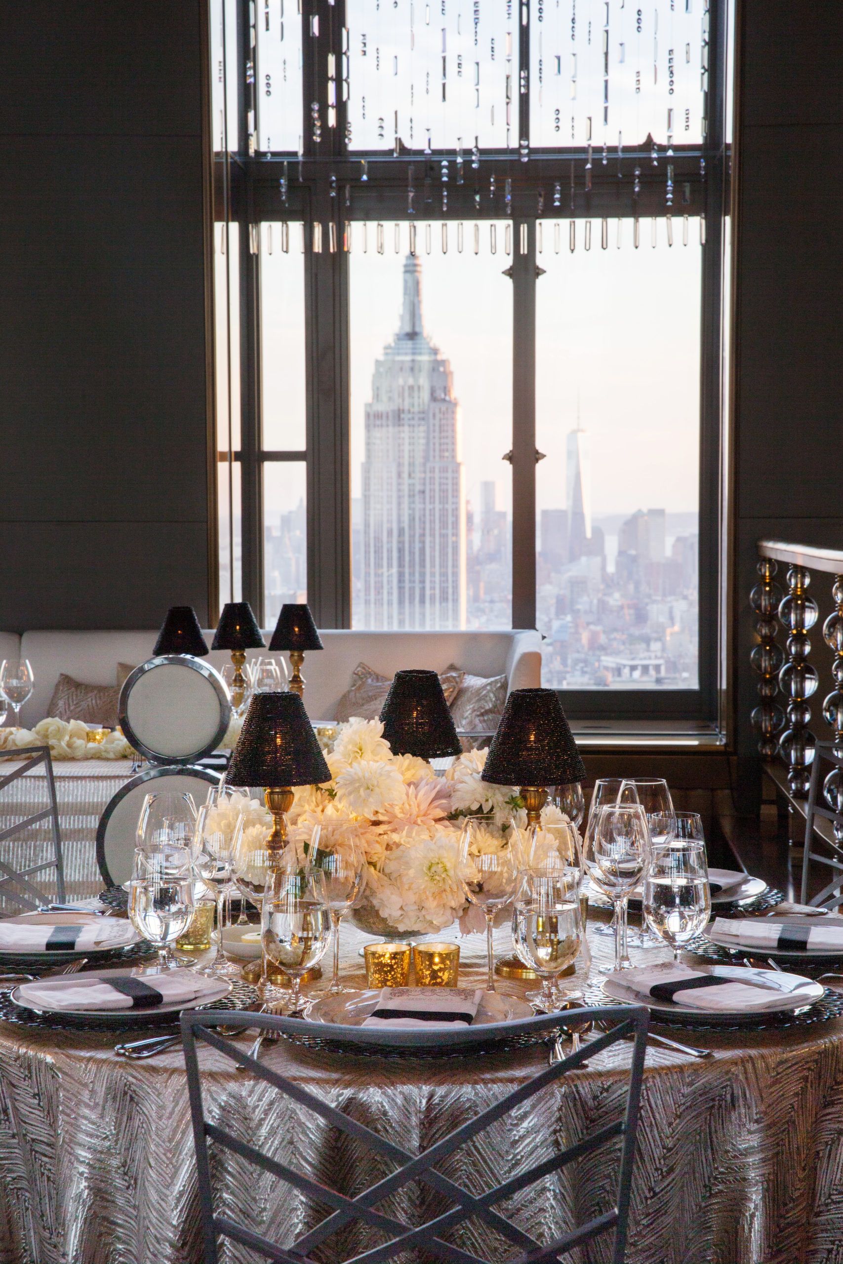 Leslie Price of In Any Event adds, “My first “go-to” these days is Peak NYC. The venue is really versatile — you can buy out just the private event space, which works for an intimate seated dinner or cocktails for up to 250. It’s a blank canvas and also a finished space with lots of potential to customize. If you buy out the entire floor, it’s perfect for a ceremony, cocktails, dinner and dancing. With floor-to-ceiling windows on the 101st floor, the skyline view is undoubtedly the star. There’s a small outdoor private spot your guests can access, one floor above the Edge observatory…Also, they have a small private dining room for 14 guests if you’re looking for something really intimate. And the elevator ‘shows’ both up and down are an experience unto themselves.”