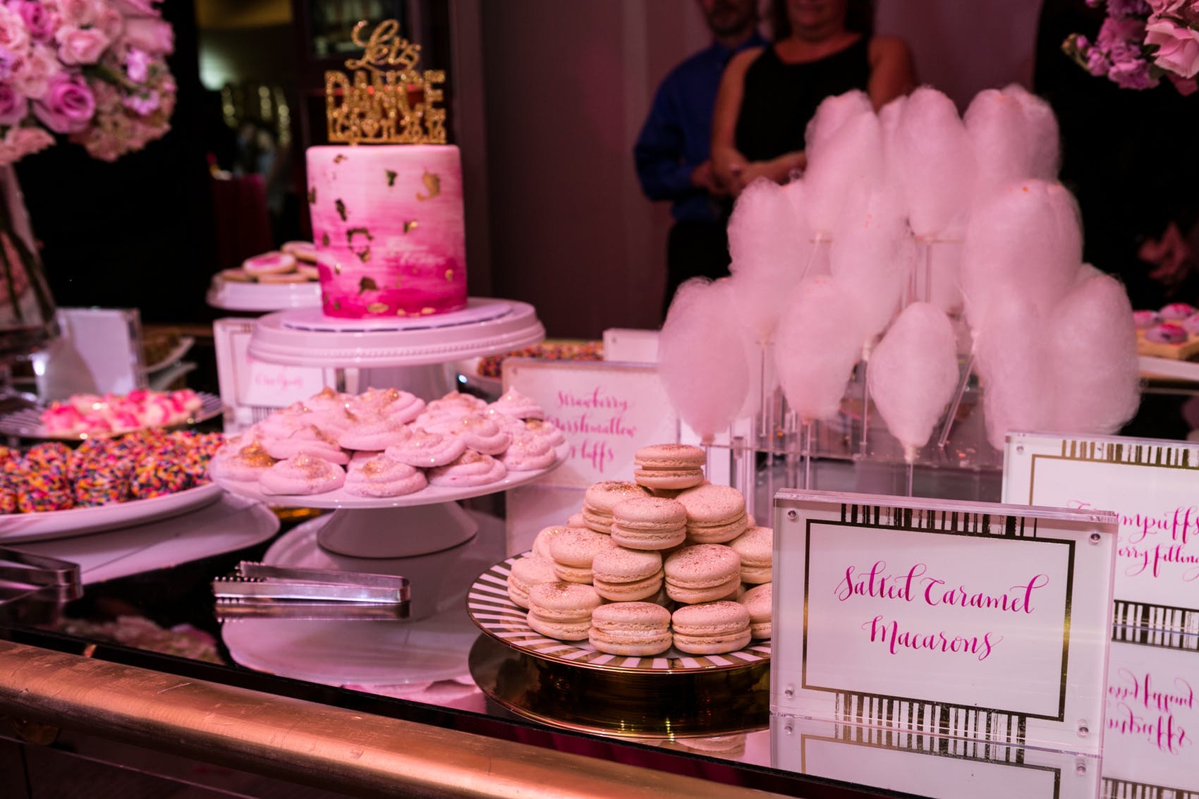 Don’t miss how this glamorous Bat Mitzvah celebration that filled the space with pink floral ceiling installations and purple lighting then treated guests with custom swag.