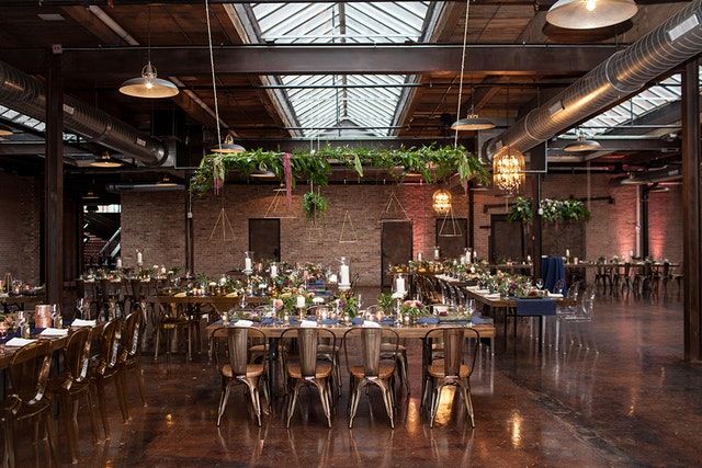 The venue boasts two virtually column-free spaces with design details like custom hardwood floors, exposed brick ceilings, and tons of natural light.